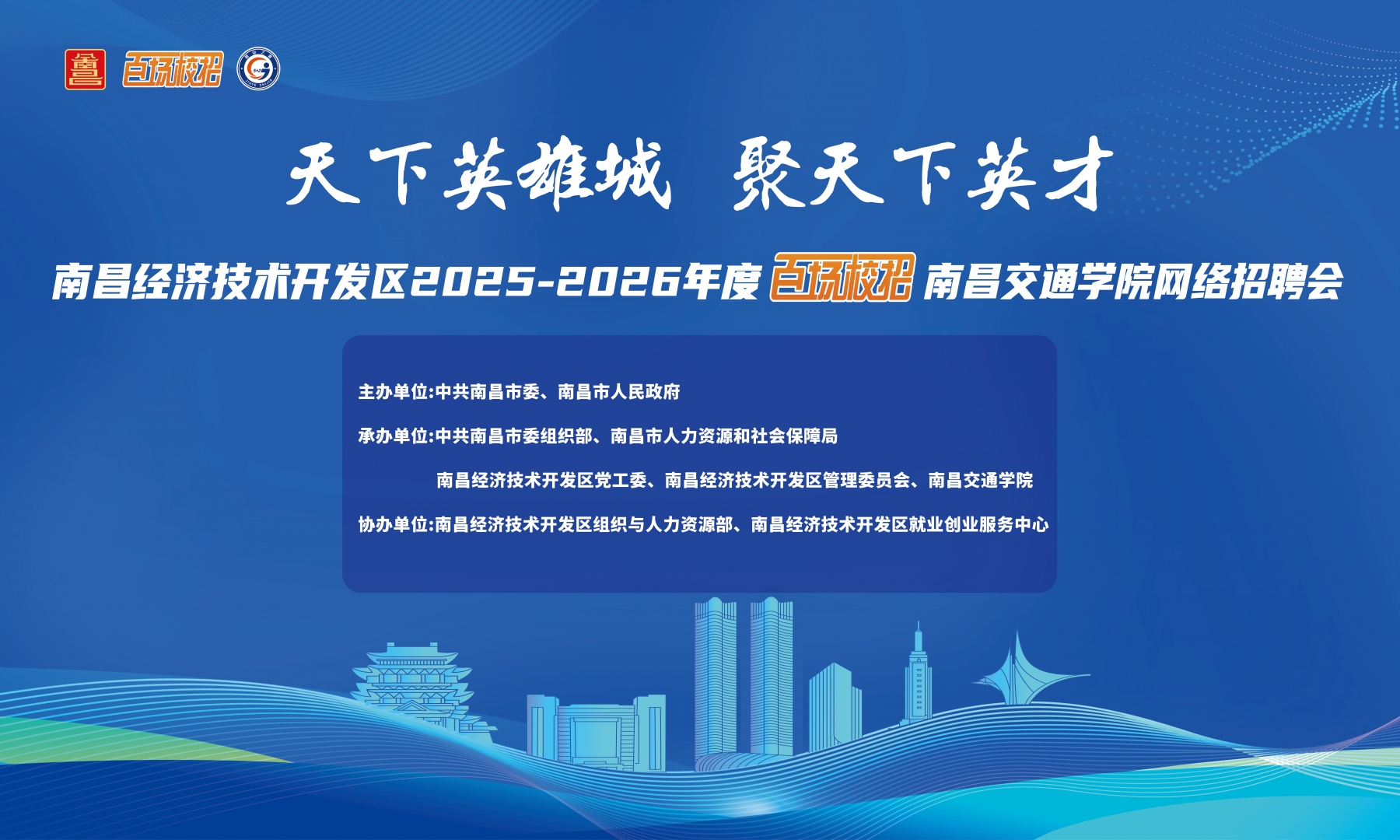 为贯彻中央人才工作会议精神,落实省委、市委党代会要求,依据关于印发《2025-2026年度南昌市10万人才来昌留昌“百场校招”目标管理指导意见》的通知(洪人社发〔2025〕35号)、《南昌市2025-2026年度吸引10万名大学生和技能人才来昌创业就业工作实施方案》的通知(洪人社发〔2025〕33号)、《南昌市2025-2026年度吸引10万名大学生和技能人才来昌留昌创业就业“百场校招”活动方案》的通知(洪人社发〔2025〕34号)的精神,经研究,决定开展南昌经济技术开发区2025-2026年度“百场校招”南昌交通学院网络招聘会